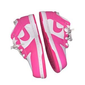 The Nike Dunk Low GS Laser Fuchsia Pink Barbie in size 3Y Boys is a stylish and comfortable sneaker designed for activewear or casual occasions. With a round toe shape, lace-up closure, and rubber outsole, these shoes feature a solid pink color with Barbie character accents. Made with leather upper material and foam insole, these Nike Dunk Low GS sneakers are perfect for various activities like cross-training, basketball, and running. The low-top style and standard shoe width make them a versatile option for kids in the summer, fall, or spring seasons.
