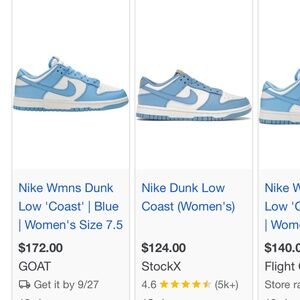 Pre-owned Dunk Low Coast in excellent condition, only worn a few times. Shoes have been cleaned and are a rare find. Ships without original box. Women’s Size 9/Men’s size 7.5.