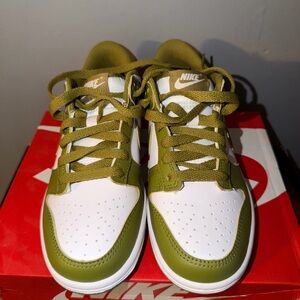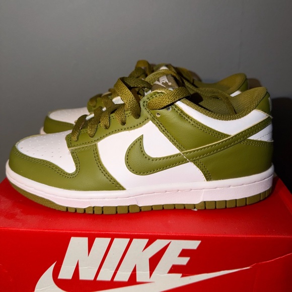 Nike low-top sneakers in olive and white. Sleek design for everyday comfort.
