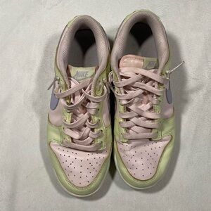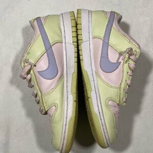 Super cute and hard-to-find Nike Dunk Low ‘Lime Ice’ sneakers 🍋💜 Featuring pastel panels in pink, pale yellow-green, and lavender, these are a must-have for Y2K and streetwear lovers. Major spring & summer vibes!