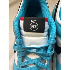 The Nike Dunk Next Nature Low N7 in size 9.5 is a stylish and sustainable sneaker designed for men who care about both performance and the environment. This low-top shoe features a nubuck upper material in a bold blue colorway, perfect for athletic activities. With the iconic Nike Dunk design and a focus on sustainability, this shoe is a great choice for those looking for a versatile and fashionable option for their footwear collection.