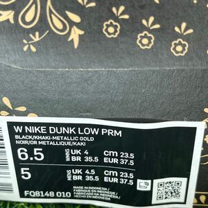 Nike Dunk Low PRM Metallic Gold Khaki Black Women’s 6.5 / Men’s 5 FQ8148-010