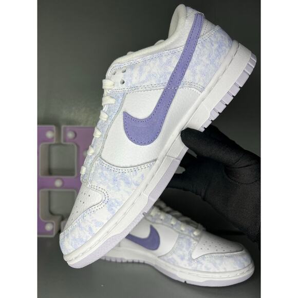 The Nike Dunk Low Purple Pulse (W) is constructed with a white leather upper and blotty Hyper Royal overlays that deliver a faint contrast. Sharp Purple Pulse suede Swooshes and heel embroidery add deeper hues to complete the desig