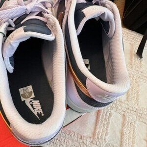 This vintage-inspired sneaker boasts a low-top design with an upper made of Thunder Blue leather with heel and toe overlays in contrasting light grey. A metallic Swoosh checks across the side panels and winds behind the heel, perfectly adding a pop of shine. The ‘NIKE’ lettering stitched across the heel panel and the ‘NIKE’ tongue tag both come in a subtle white that doesn't distract from the metallic elements.