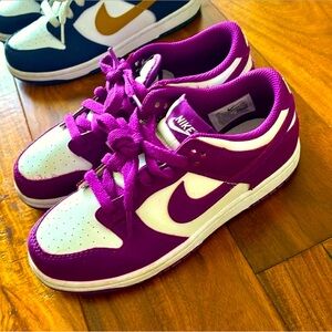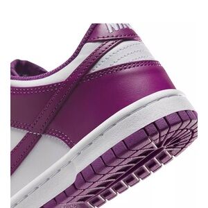 Vibrant Nike all leather sneakers for kids. Purple and white design. Ideal for play and daily wear.