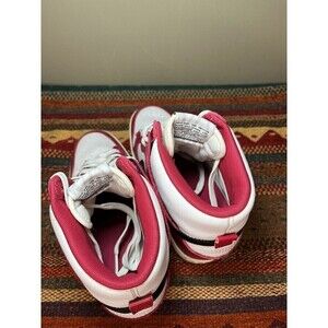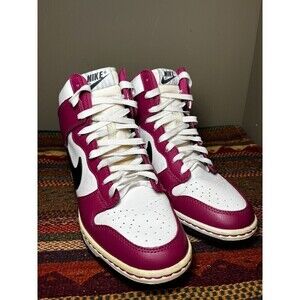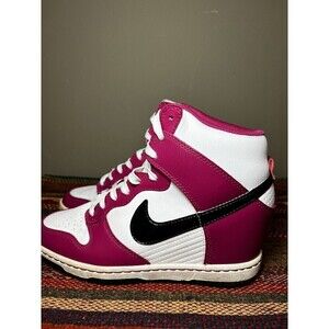 Nike Dunk Sky Hi Bright Magenta Sneakers 528899-502 Black White Wedge Women 7.5. The shoes are in pretty good pre owned condition with some very light signs of wear, but there is a cigarette smell. I personally do not think it is super strong however it is there and you can smell it if you are face to face with the shoe. Feel free to message me if you have any questions. There is some discoloration on the tongue, not super noticeable but is there.