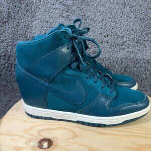 Nike Dunk Sky Hi Essential Wedge Sneaker Women Sz 11 Dark Sea Blue Leather Suede