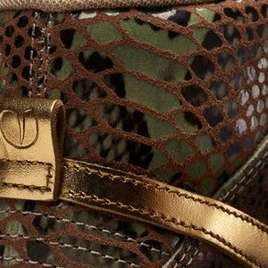 Wedged sneaker with Golden Python print. Green and Orange tones. Metallic gold Swoosh and Linen details.
