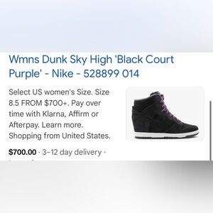 Nike Dunk Sky High Black Court Purple Sneakers Size 8.5