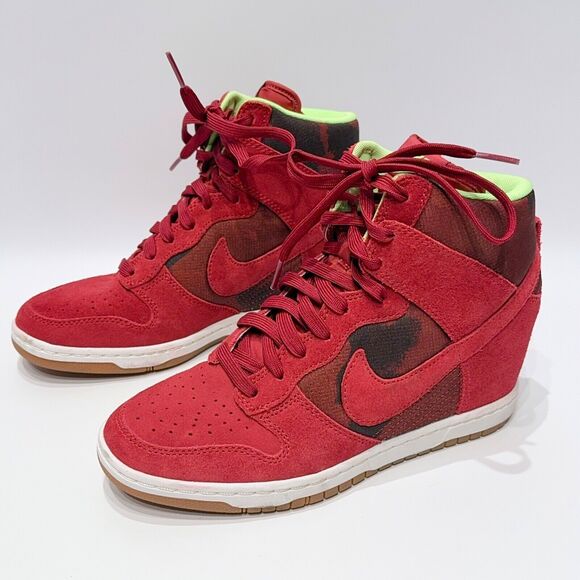 Nike Dunk Sky High Womens 3 Wedge Heel Sneaker Red Suede Camo Size 8 Worn Once * Appears to have been worn just once, very gently used and extremely clean (please see photos).