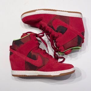 Nike Dunk Sky High Women’s 3” Wedge Heel Sneaker Red Suede Camo Size 8 Worn Once