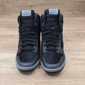 Nike Dunk Sky High Women's Size 8.5 Black Metallic Hematite Hidden Wedge Heel Shoes (528899-015)