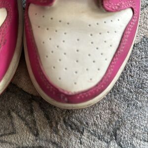 Richie and white sneakers. A tiny bit of unthreading on the left shoe but no other. Heel of the soles a little worn but stilll good enough for more wear and tear.