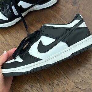 Stylish sneakers in black and white. Perfect for everyday wear. some wear on them