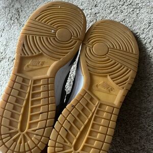 Size 9.5 gray and white nike dunk lows. good condition only worn a few times. super great shoes and match pretty much anything. just don’t wear them much. contact me if you have questions