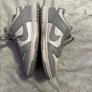 Sleek Nike sneakers with a dual-tone gray design. Ideal for everyday comfort. Well used, needs a good home