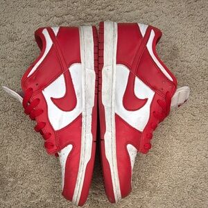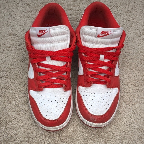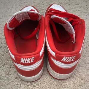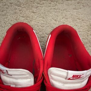 Dynamic Nike shoes with bold red and crisp white. Ideal for active lifestyles.
