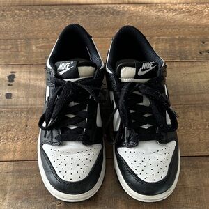 Sleek Nike low-top sneakers. Black and white design. Ideal for everyday style.