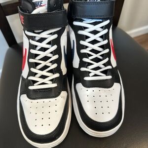 Like new, worn once. Nike Dunks, Size 7 Youth. Red, white and Navy blue.