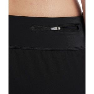 Nike Element solid black swim skirt. Slip on style with split hem, high back coverage, stretch waistband, concealed zipper pocket. Built in brief. Excellent pre-owned condition. No stains or flaws. Smoke free home. 100% polyester. Hand wash cold separately, line dry. Style tag removed. Size small. Measurements: Waist 15 inches across, length 11 inches.
