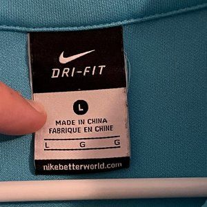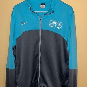This is a hardly worn, like new Nike Elite Dri-Fit jacket. Has the full zipper. All logos are present and full. No rips, tears or stains. Lightweight. Perfect for sports and the outdoors. Color is gray and teal.