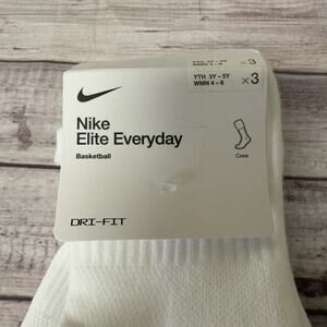 Nike Elite Everyday Crew Socks Wmn 4-6 Youth 3Y-5Y 3 pair White Basketball