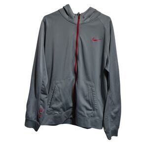 Nike Elite Men's Therma-Fit Full Zip Hooded Sweatshirt Gray & Red Size XL