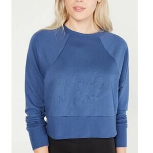Nike Embossed Spellout Sweatshirt Womens S Blue Lux Fleece CV7248-469 Athleisure