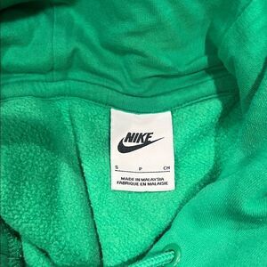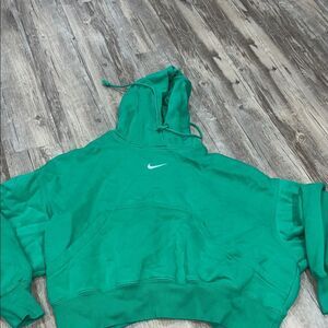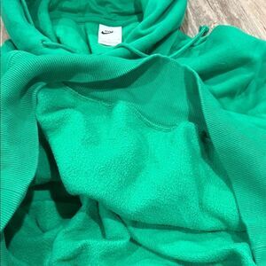 Vibrant emerald hoodie with front pocket. Features Nike logo and drawstring hood.