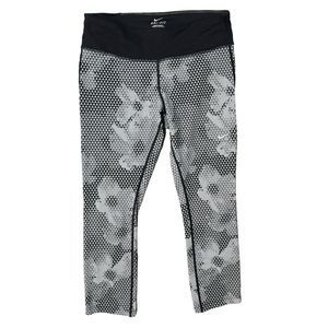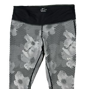 Nike Epic Run Capris Medium Crop Pant Legging Black White Triangle Floral