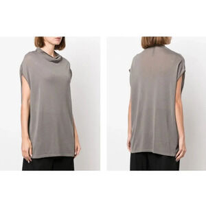 cowl neck tank top from NIKE featuring slate grey, cotton, semi-sheer construction, cowl neck, drop shoulder, short sleeves and straight hem.