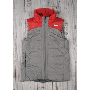Nike Essential Filled Puffer Vest Womens Size Small Red Grey AQ3568-068.