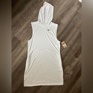 This listing is for a NWT's Nike Essential Sleeveless Hooded Swim Cover-Up Dress in size large, in color white. Stay styling and comfortable while you're by the water with this Women's Nike Essential Sleeveless Hooded Swim Cover-Up Dress. Please see photos for measurements.
