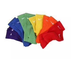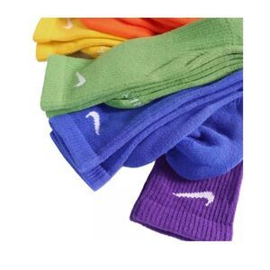 Elevate your workout game with these colorful Nike Everyday Plus Cushioned Crew Training Socks. Made with a blend of polyester, spandex, and cotton, these mid-calf socks are perfect for gym and training activities. The cushioned feature provides comfort and support, while the multicolor design adds a pop of style to your workout outfit.