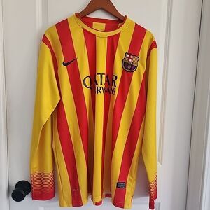 Nike FC Barcelona 2013/2014 Away Football Soccer Jersey Long Sleeve Large Stripe