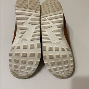 Stylish Nike athletic shoes. Features a sleek brown upper with a contrasting white sole.