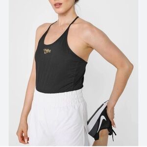 Nike Femme Elastika Training Tank Top Size Medium Black Ribbed Gold Metallic