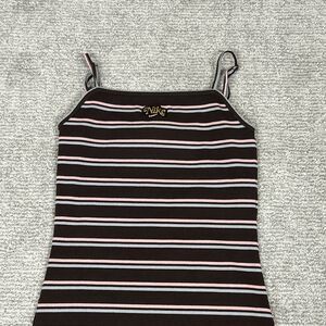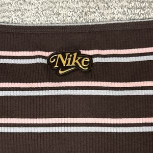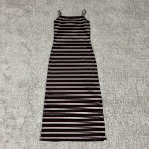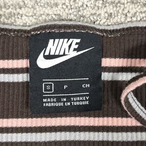 Nike Femme Ribbed Striped Maxi Dress Womens Small Y2K Brown Side Slit