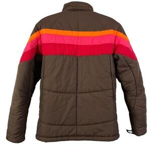 Elevate your winter wardrobe with this Nike Fit Storm ACG puffer jacket. The brown and pink striped design, featuring a full zip closure and Nike logo accents, is perfect for travel, casual outings, and workwear. The softshell fabric type and regular fit make it comfortable to wear, while the insulated features and lined pockets provide warmth and convenience during the chilly winter, fall, and spring seasons. This coat is machine washable and is available in size M.