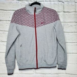 Nike Fit Dry Gray Maroon Printed Full Zip Up Collared Cotton Jacket Womens Large