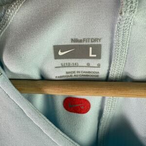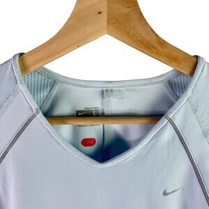 Nike FitDry Women's Large Light Blue V Neck S/S Running Athletic Top Shirt