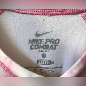 Nike Fitted Pro Combat Dri-Fit Pink and White Tie-Dye Long Sleeve