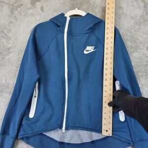 Nike Fleece Hoodie Jacket Womens Small Blue Full Zip Pockets Swoosh 930757-474