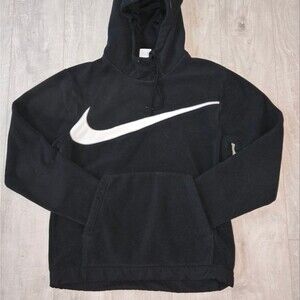 Nike Fleece Pullover Hoodie Cozy Drawstring Bottom Black White Sweatshirt Warm S