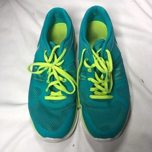 Nike Flex 2014 Run Tribe Green White Running Shoes Sneakers Size 9 642767-300. Condition is "Pre-owned". Shows signs of wear