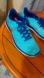 Vibrant turquoise shoes with striking magenta details. Ideal for running and everyday wear. Good pre-owned condition.
