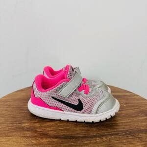 Nike Flex Experience Pink And Gray Adjustable Strap Sneaker Girls Size 6