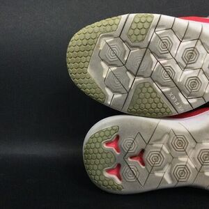 These shoes are in great condition! Minimal wear, inside and out! They are bright pink ombre that ends in light orange at the toes. The treads are dark from use, but still have plenty of life. Women's size 7, UK size 4.5, and EU size 38.