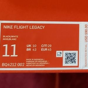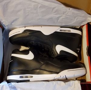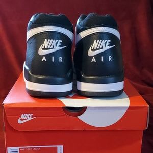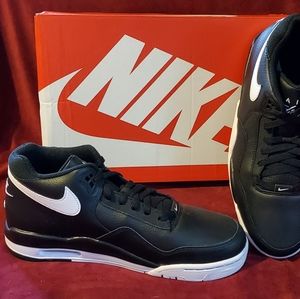 Black & white Nike Flight Legacy mid-high sneakers, new in box.