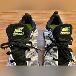 Authentic Nike Flyknit Lunar1+ Sneakers. Shows usual signs of wear & dirt on sneakers. No tears. Just slightly dirty. ZOOM IN PHOTOS. Doesn’t fit my husband anymore. Will be sanitized before packaging. GUC